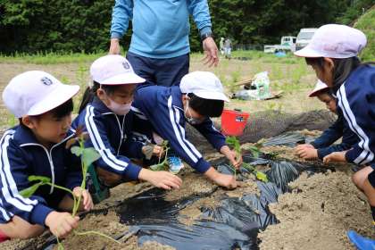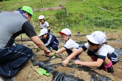 愛知県に「緊急事態宣言」が発令され、今日は運動会を実施する予定でしたが延期となり、5月25日(火)に予定していたサツマイモの苗植えを今日行いました。