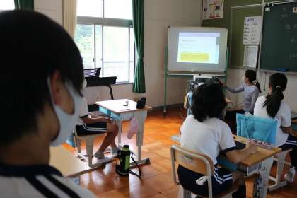 6年算数「分数のかけ算」〜分数の計算マスターになろう2〜 6月1日(火) 公開日 2021/06/02 更新日 2021/06/02 校長室から 担任のタブレットから、子ども達の振り返りの考えを把握して、子ども達が発表していました。挙手していなくても、振り返りの視点が他にないものであれば、あえて示して発表してもらうこともできます。ワークシートや学習ノートに記入した一人一人の考えや思いをリアルタイムで知ることができます。