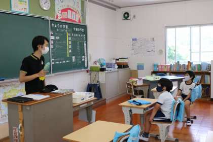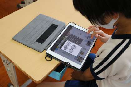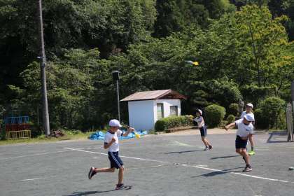 講座の最初は、教室内で学習タブレットを活用して、レクで活用する道具(器具)についてその名称と「どのように使うものか?」をみんなで調べました。その名称は、「ジャベボール」・「スカットボーイ」などで、楽しくボールを遠くに飛ばすための練習用の器具でした。遠くへ飛ばすコツを調べた後で、外に出て実践し、記録UPを目指しました。