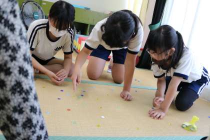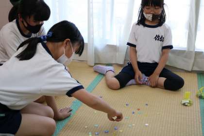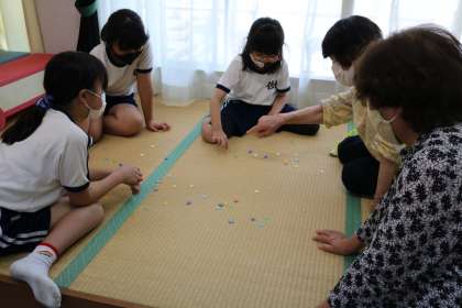 令和3年度クラブ活動(1) 〜講座「伝承遊び(おはじき)」=講師の先生によるマンツーマン指導〜 6月7日(火)