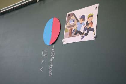 キーワードになりそうな場面や、考えてほしい言葉について、気に留めてほしいという願いが教師の判読に表れていました。お話を聞いて、「ガラスを割ってしまった時の千一郎の気持ち」を考えました。千一郎の気持ちを表すために、心情円盤(赤と青)を活用して、各児童が気持ちの割合(赤…あやまる、青…ほっておく)を示してから、ワークシートにまとめ、意見発表をしました。