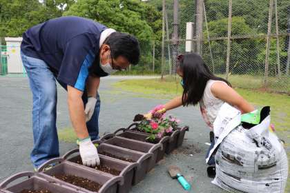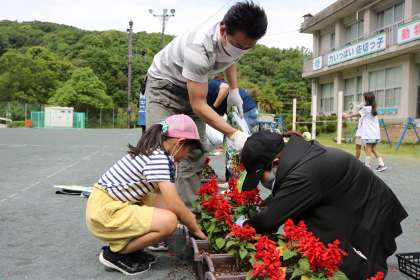 令和3年度 花植えボランティア活動6月を行いました!(2) 6月12日(土) 公開日 2021/06/14 更新日 2021/06/14 校長室から 今回も親子で、たくさん参加していただきました。今回は、苗の高さがそろうように、あらかじめ培養土を入れたミニプランターを110個準備しました。 用意した28L培養土を10袋活用しました。