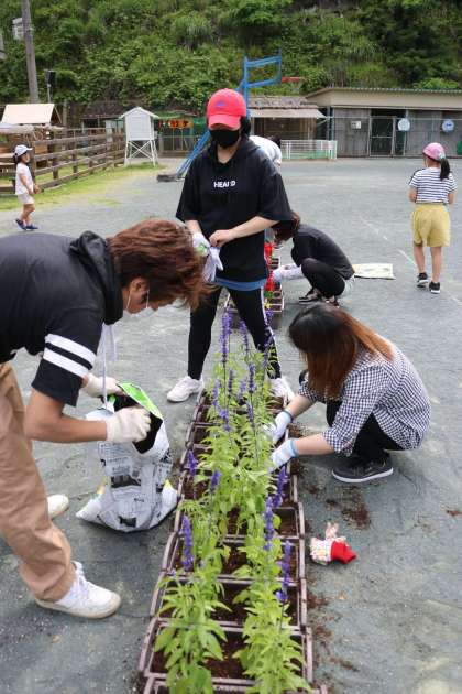 みなさんの協力のおかげで、9時から開始して、45分間で316株の花々を定植することができました。感謝いたします。