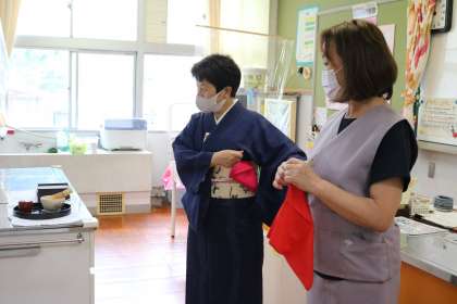 今年度、コロナ禍を考慮して、参加人数を少なくし、活動場所を分散するクラブ活動として、新講座の「茶道体験」を行いました。講師は、足助地域のKさんです。学区のIさんにもサポート役で支援いただきました。子どもたちにもわかる「茶道」の基本的な茶席の作法を学習しました。