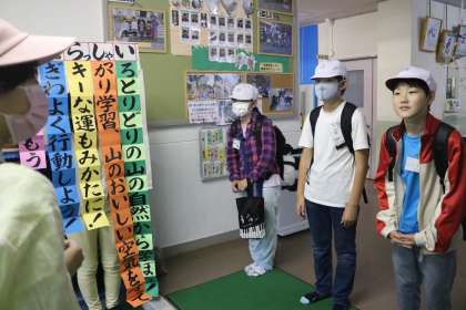 「しゃ」…(し)っかり学習 (や)まの美味しい空気を吸って