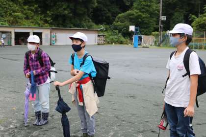 雨により外でのウォークラリーが中止となり、内容も変更される中、日帰りのキャンプから5年生3名が帰ってきました。今回、友だち1名が欠席で全員そろっての参加がかないませんでしたが、足助10校の同い年の子たちと班を組み、短くても楽しく過ごした時間は貴重です。