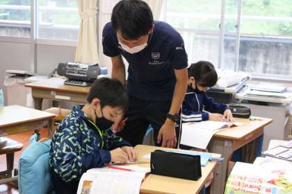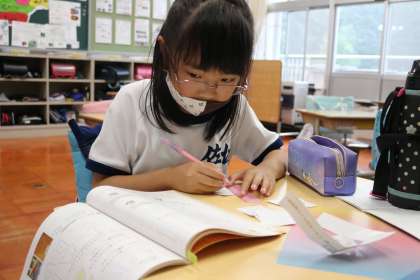 4年生が図形の平行の学習をしました。切り抜いたいろいろな形の中から、平行を見つけて、それぞれがどのような仲間にわかれているか見つけていました。