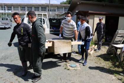 令和3年度 地域学校共働本部事業「ウコッケイ新小屋」と「水車の新取水口部」の設置始動! 〜水車取水口設置「材料運搬」(1)〜 7月25日(日)