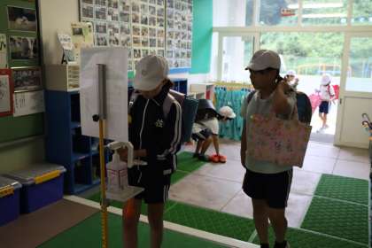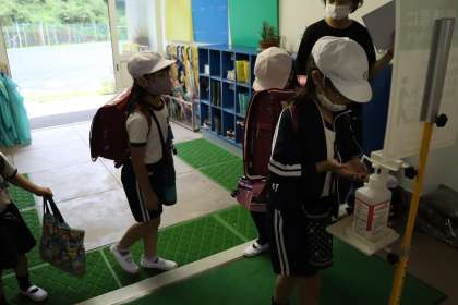 朝登校時の手指消毒を忘れずに行います 9月3日(金)