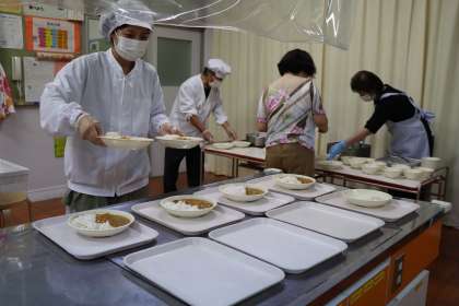 コロナ感染対応の給食配膳の様子 〜1おかず配膳〜 9月3日(金)
