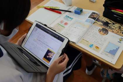 なぜ?と思うところは、タブレットを活用していろいろな情報から予想も含めて自分の考えを発表する姿がありました。
