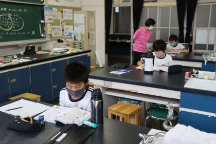 5年算数 「倍数・公倍数」 〜練習問題を解いて答え合わせ〜 9月7日(火) 公開日 2021/09/10 更新日 2021/09/10 校長室から コロナ感染防止のため算数の授業でも、対面式とせず学習しました。倍数の復習をした後、数直線を使って2つの倍数を考え、その公倍数を求める問題に取り組みました。