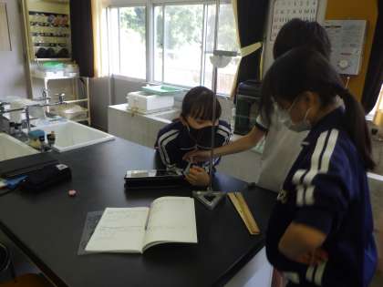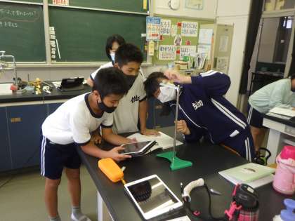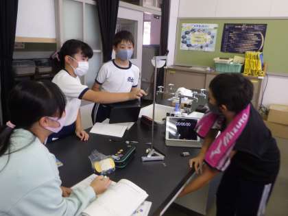 5・6年理科 「ふりこの動き」 〜ふりこの実験〜 9月16日(木) 公開日 2021/09/29 更新日 2021/09/29 校長室から 3つのグループに分かれて「ふりこの実験」を行いました。ふりこが1往復する時間が長さ、重さ、ふれはばの違いによってどう変わるかを実験装置を使って調べました。 予想を立ててから、それぞれの条件を整えて実験しました。