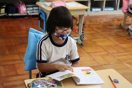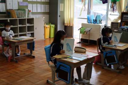 1年国語 「こくごノートとかんじノートの使い方」 9月21日(火) 公開日 2021/09/29 更新日 2021/09/29 校長室から 1年生が新しく使う国語ノートと漢字ノートの使い方の学習をしました。