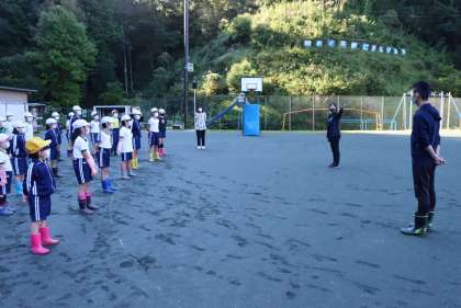 教育実習生のO先生が佐切小に来られました! 〜自己紹介編〜 9月27日(月) 公開日 2021/10/10 更新日 2021/10/10 校長室から 今日から、10月15日(金)までの3週間、佐切小学校にO先生が教育実習生としてこられました。5・6年生学級を担当してもらいます。 O先生は、昨年ボランティア実習で、本校の運動会の時期に参加されていたので、2年生以上は面識がありました。 朝の動物飼育終了後に、自己紹介をしていただきました。