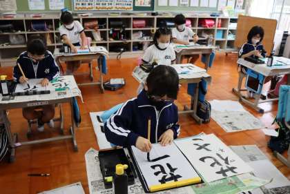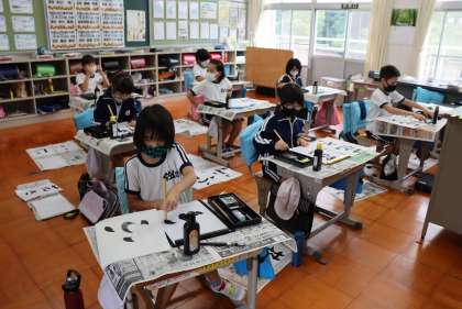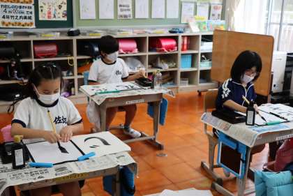 3・4年書写「書き初めの課題練習パート1」 〜文字形と大きさを知る編〜 10月1日(金) 公開日 2021/10/10 更新日 2021/10/10 校長室から 発展課題として、書き初めの課題文字の練習を始めました。書き初め用紙ではなく、半紙を使って、3年生は「大きくのびやかに、やわらかくひらがな・漢字」を書く・4年生は「はらいとはね、漢字とひらがなの大きさ」に気をつけて書くというめあてで練習をしました。 次回は、書き初め用紙を使って練習します。