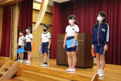 令和3年度の前期終了「節目の会」を行いました。各学年代表が、前期頑張ったことと後期の目標を立派に発表しました。