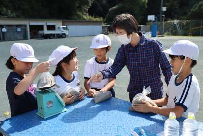1kgに一番近いのは、Kさん。最後に授業者のU先生が、はかりに載せたところ、なんとほぼ、1kgぴったりで、子どもたちはびっくり!