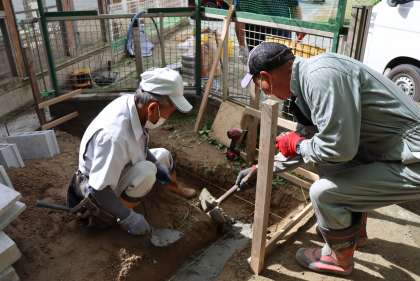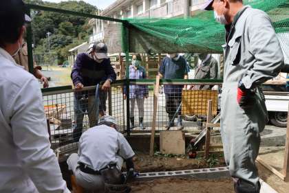 令和3年度 地域学校共働本部事業「ウコッケイ新小屋」と「水車の新取水口部」の設置活動 〜新ウコッケイ小屋の基礎づくり(2)〜 10月16日(日)