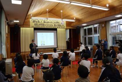 東京大学特別栄誉教授、東京理科大学前学長・栄誉教授、文化勲章受章、豊田市名誉市民、佐切小学校卒業生であられる藤嶋昭先生が、4度目となるご講演にいらっしゃいました。「理科を楽しく 身のまわりのことを知り、有名な科学者のことなども 楽しく勉強しよう」という演題でご講演いただきました。