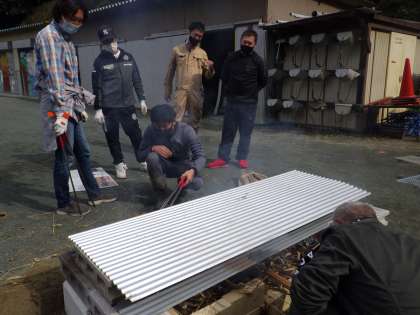 日曜日、11月6日学芸会後のPTA親子活動の「焼いも会」を成功させるためにPTA役員のOさんを隊長として、担当の方々に集まっていただき、窯の火の付き具合や焼き時間などを確かめながら焼き芋をつくりました。