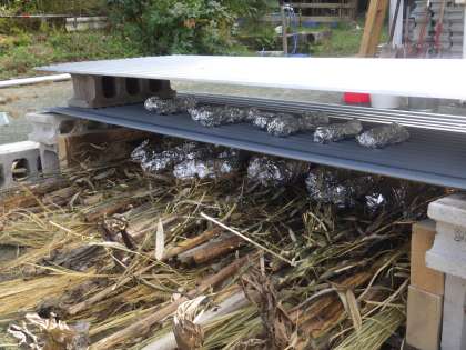 ひまわりの茎も燃やそうと入れたのは失敗でしたが、いもの大きさによって焼き上がる時間やいもを時々回しながら焼くことなど上手に焼く方法を検討することができました。 佐切畑で収穫したサツマイモをおいしく焼いもにして食べてもらうために、休日返上してご参加いただいた担当のPTAの方々に感謝します。当日おいしく焼けることを願って・・・。