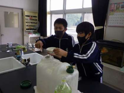 4月14日 マイエンザづくり 公開日 2022/04/14 更新日 2022/04/14 特色ある学校づくり推進事業 4月14日に、5・6年生が「マイエンザ」を作りました。「マイエンザ」はヤギのララの小屋の消臭・殺菌に使い、ララが気持ちよく過ごせるようにするものです。 また、「マイエンザ」は、動物のフンを利用したたい肥の発酵を促進する作用もあります。地域や地域外にも配付できるように、たい肥作りに取り組んでいます。