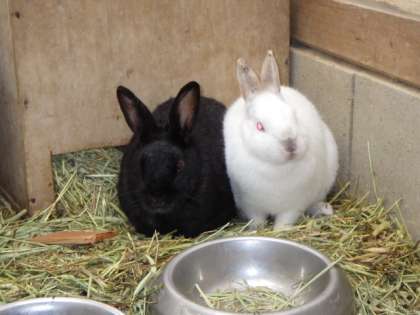 本校のウサギは全部で5羽います。写真はのクロコとおもちです。