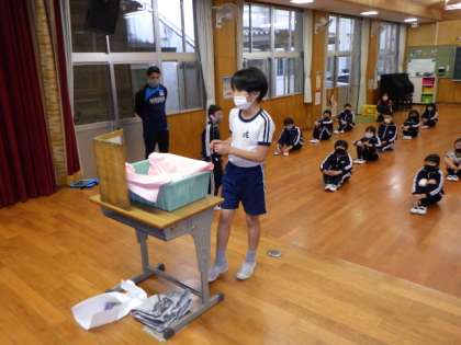 9日(月)のふれあいタイムに、全校でお別れ会をしました。
