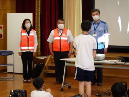 5月25日(水)、足助警察署の方に来ていただき、不審者に遭遇した時の対処法について学びました。