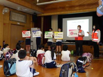 「知らない人に連れて行かれそうになったら?」「不審者は見た目で分かるか?」など、クイズ形式で考えていきました。