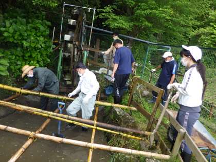 6月5日 環境支援ボランティア活動 公開日 2022/06/06 更新日 2022/06/06 学校の特色ある活動 6月5日(日)、第2回目の環境支援ボランティアの活動を行いました。 今回は、ウサギ小屋柵の改修、通学路の竹伐採、水車小屋・池の清掃の3つの作業を行いました。 朝早くから、3つのグループに分かれて、手際よく作業を進めていただきました。 おかげで、素晴らしい環境で教育活動を行うことができます。ありがとうございました。