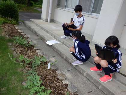 6月23日(木)5.6年生の総合的な学習の時間では、自分たちが作っている肥料「ぐ〜んベジ」の効果について調べていました。
