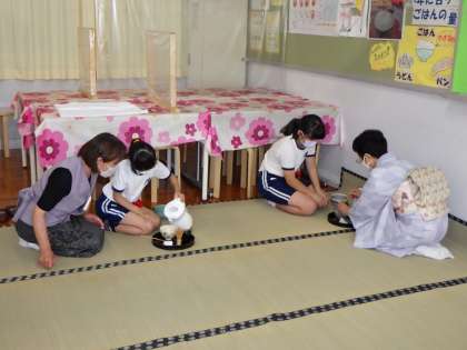お茶クラブでは、お茶を立てる作法を段々と覚え、手首のスナップをきかせて上手にお茶を立てていました。お茶を立てる姿がとても素敵でした。