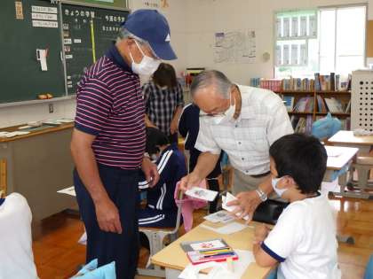 伝承クラブでは、絵が変わるマジック道具作りに挑戦していました。