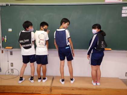 7月7日(木)6年生では、家庭科でリュックサックを作りました。ミシンで縫う位置にチャコペンで印をつけ、まち針でとめて、しつけ糸で縫いました。その後、ミシンを使って丁寧に仕上げていきました。修学旅行で使うとてもステキなリュックが出来上がりました。