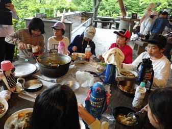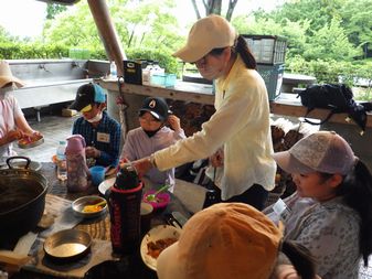 野外炊飯です。 グループの仲間と協力してカレー作りをしました。