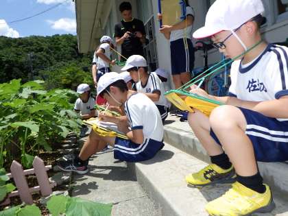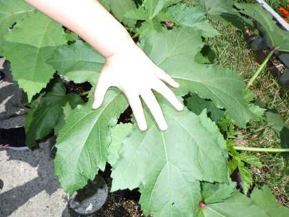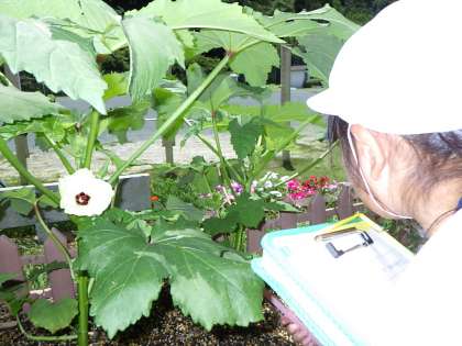 7月13日 オクラ観察 公開日 2022/07/13 更新日 2022/07/13 お知らせ 7月13日(水)3.4年生は、理科の授業でオクラの観察をしました。5月に種を植えたオクラが、ずいぶん成長しています。葉の大きさや、茎の太さ、花の形など、子ども達は、目や手を使って分かったことを絵や文で観察カードに描いていました。 オクラの実もできはじめ、収穫するのが楽しみな様子でした。