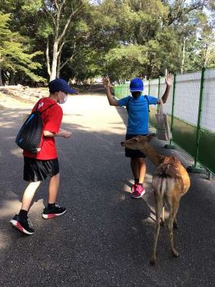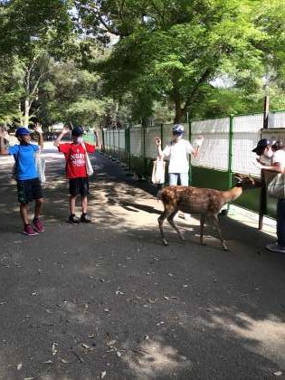せんべい1枚に群がる鹿たち、かなりの粘りがあります。