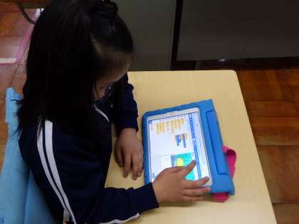 基本的な操作を学ぶことで、プログラミング的思考力を育てています。