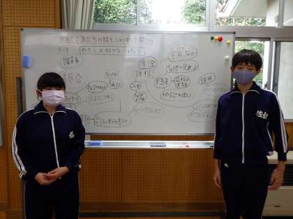 今回は「好きな教科」をテーマにして、6年生2名が、それぞれの好きな教科について、好きになった理由や頑張りたいことなどを全校の前で発表しました。