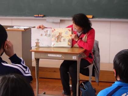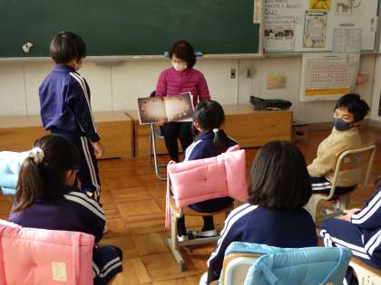 低学年では、サンタクロースの話、高学年ではクリスマスの話の読み聞かせをしていただきました。どちらの絵本も、挿絵がかわいらしく、心温まる内容の絵本でした。