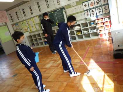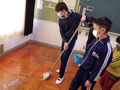 年度末の大掃除 公開日 2023/03/10 更新日 2023/03/10 お知らせ 3月10日(金)、56時間目に全校で年度末の大掃除を行いました。 この一年、お世話になった教室や特別教室をほうきや雑巾できれいにしていきました。 その後は、教室の机やいすなどを全部廊下に出し、床にワックスを塗っていきました。 班のみんなで協力しながら、大掃除をすることができました。 きれいになった教室で、この一年の締めくくりをすることができますね。