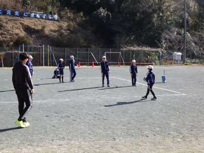 春の日差しを感じられる青空の下で、ドッヂボールで汗を流していました。