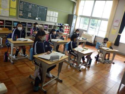 1年生では、学級活動で、本日行われる初めての通学団について、どこの通学団がどの教室で話し合いを行うのか、担任の先生からの説明を聞いていました。