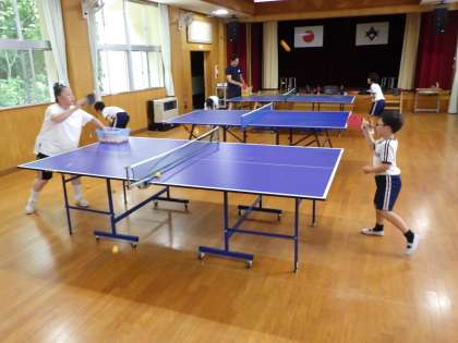 卓球クラブでは、ラケットの持ち方から打ち方など基本の構えを教えてもらい、試合形式で練習をしました。