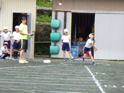 この日の体力テストでは、「50メートル走」「立ち幅跳び」「ボール投げ」を行いました。
