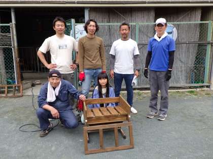 環境支援ボランティアの方々が集まり、ヤギ小屋の餌・水置き場の台づくりと花の苗植え作業を行いました。