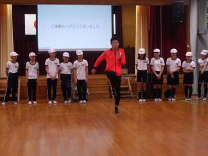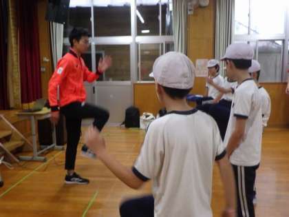 石田選手の体験談を聞いた後は、早く走るための体の使い方などを教えていただき、実際に体を動かしてみました。