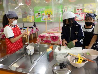 56年生では、家庭科で「おいしい 楽しい 調理の力」の学習を行っています。